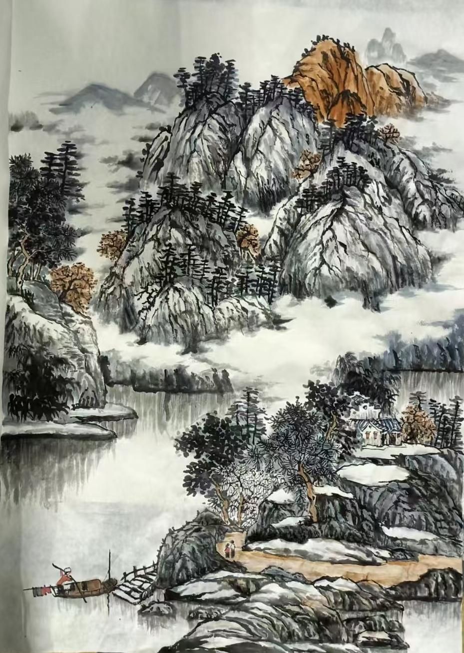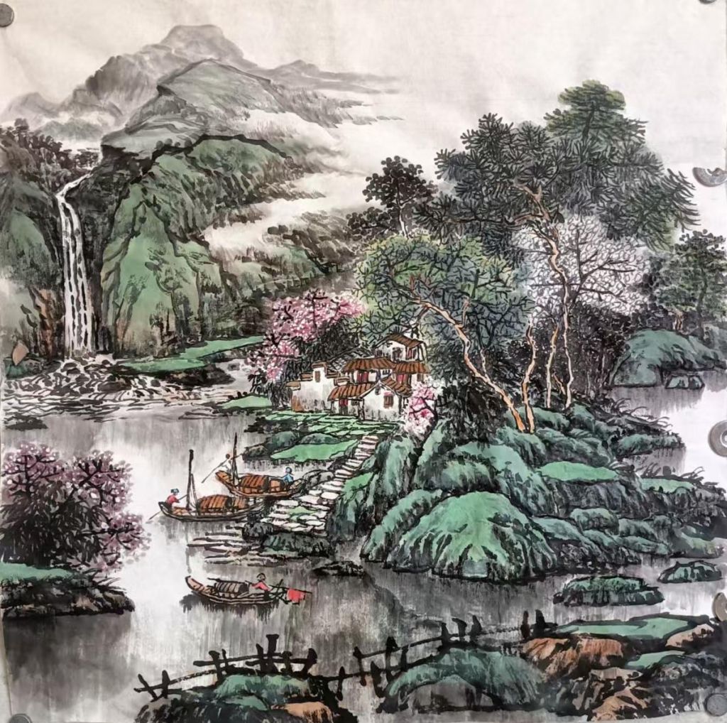 总的来说,胥立佳老师的《家在青山绿水间》是一幅既写山水之壮美,又抒人情之温暖的佳构之作。画中山水有情,人物有趣,笔墨间蕴藏着深厚的文化底蕴与生活感悟。这样的作品,不仅是视觉的享受,更是心灵的慰藉。期待胥老师未来继续深耕传统,以更多佳作唤醒人们对自然与生活的热爱。